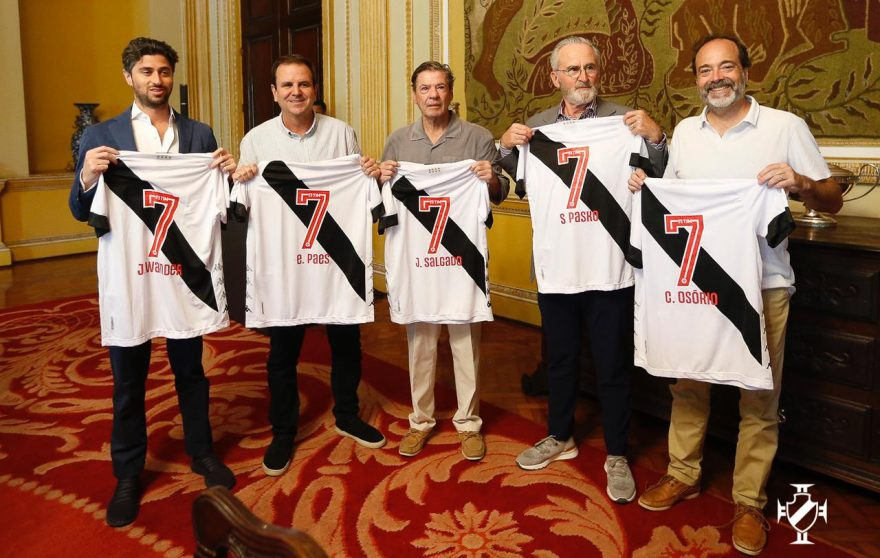 Josh Wander, Eduardo Paes, Jorge Salgado, Steven Pasko e Carlos Osório, durante reunião no Palácio da Cidade.
