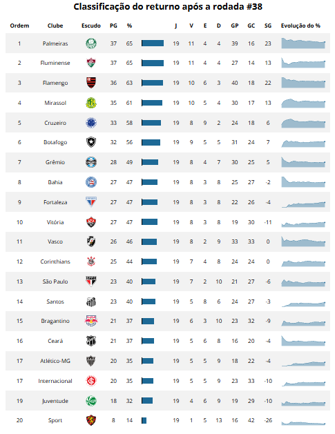Veja como terminou a classificação do segundo turno do Brasieirão.