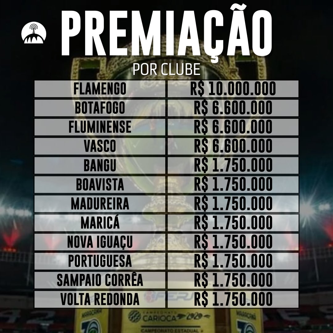 🚨 Veja como será a premiação do Campeonato Carioca.