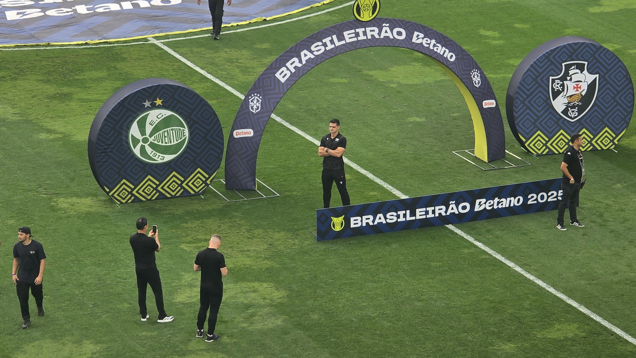O árbitro da partida entre Vasco e Juventude, Fernando Antonio Mendes de Salles Nascimento Filho (PA), fez questão de tirar uma foto no gramado de São Januário.