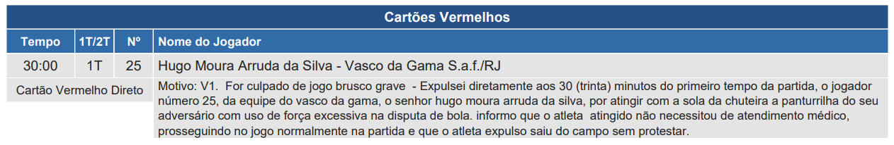 30:00 1T 25 Hugo Moura Arruda da Silva - Vasco