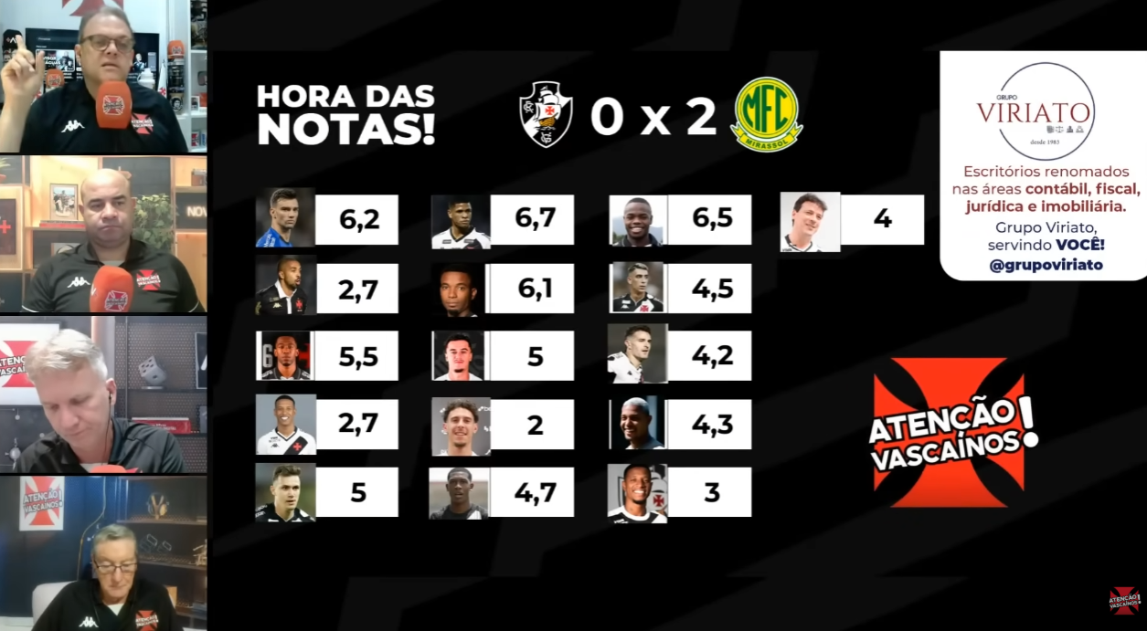 Canal Atenção Vascaínos avaliou a atuação do Vasco, na derrota para o Mirassol, por 2 a 0, em São Januário. Segundo os jornalistas, Nuno Moreira decepcionou.