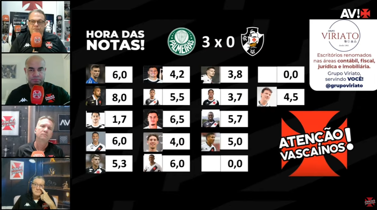 Canal Atenção Vascaínos avalia a derrota do Vasco para o Palmeiras, na última quarta (01), por 3 a 0, no Allianz Parque. Segundo os jornalistas, Lucas Oliveira foi o pior em campo.