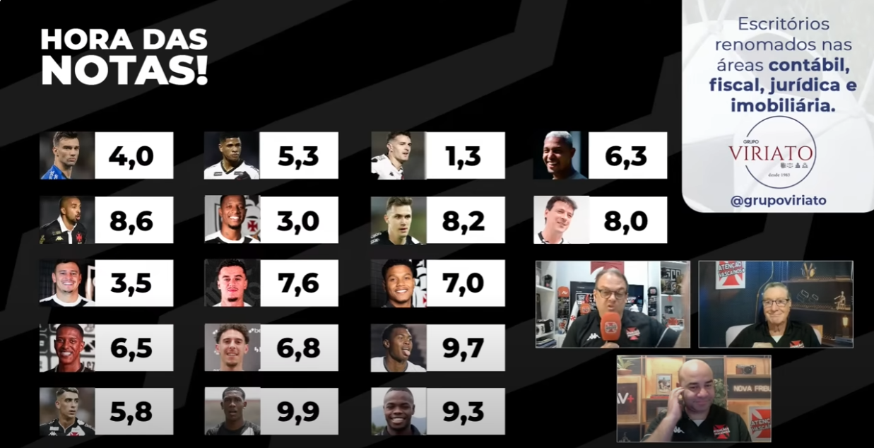 Canal Atenção Vascaínos avaliou o triunfo do Vasco, por 4 a 3, diante do Vitória, no último domingo (05), em São Januário. GB, Andrés Gómez e Rayan foram os destaques da partida, na visão dos jornalistas.