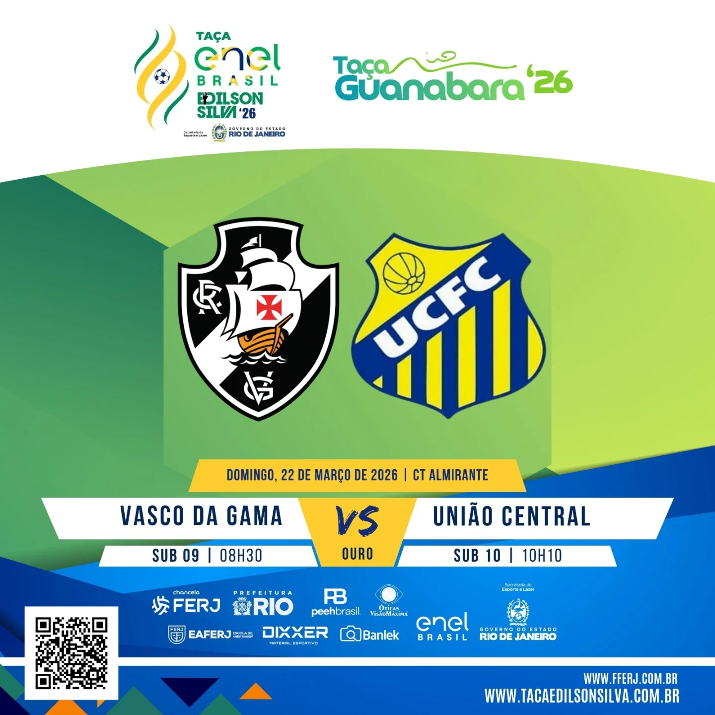 Domingo, 22 de março de 2026 | CT do Almirante | Vasco x União Central | Sub 09 - 08h30 | Ouro | Sub 10 - 10h10
