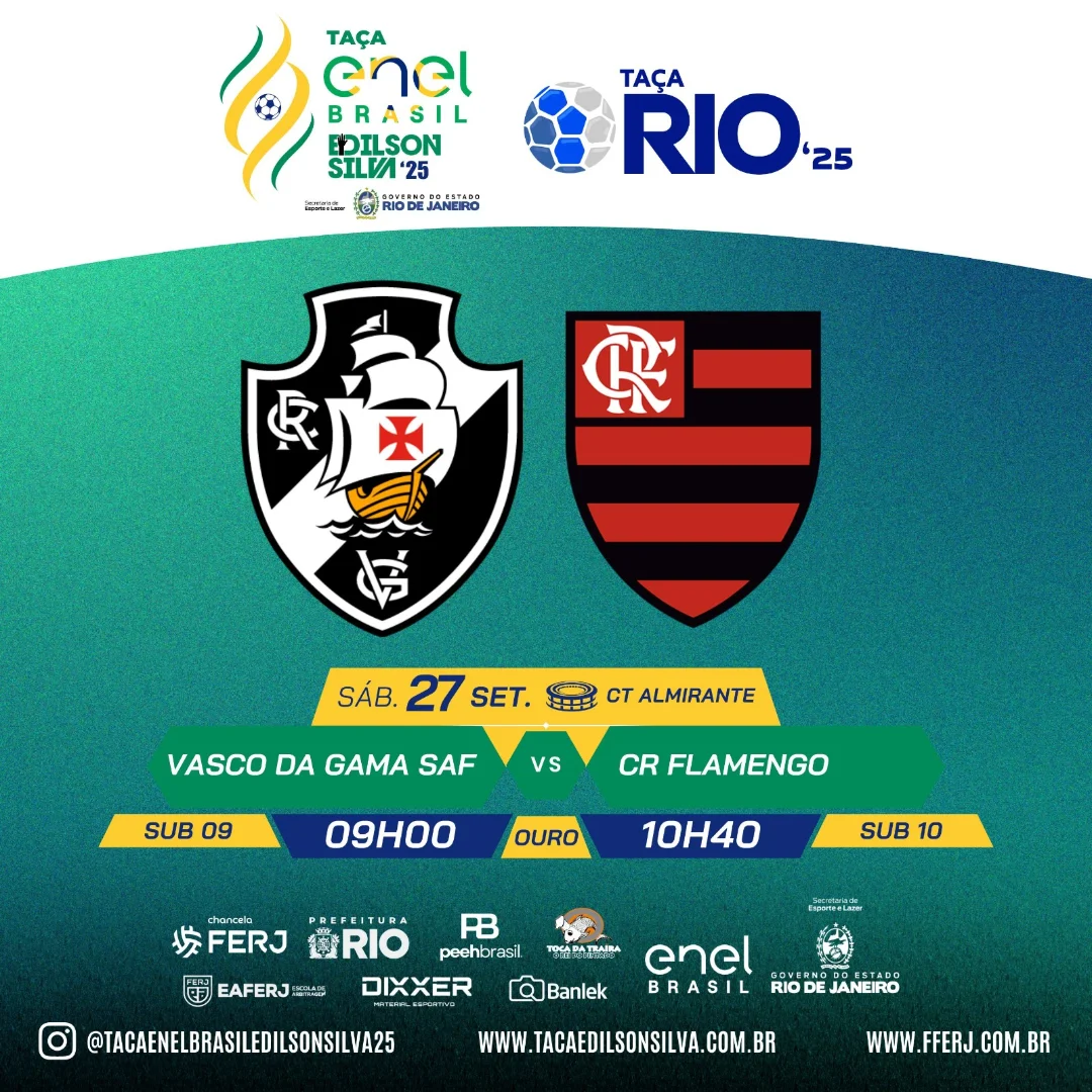 Sábado, 27 de setembro | Vasco x Flamengo | CT do Almirante | Sub 09 - 9h | Sub-10 - 10h40