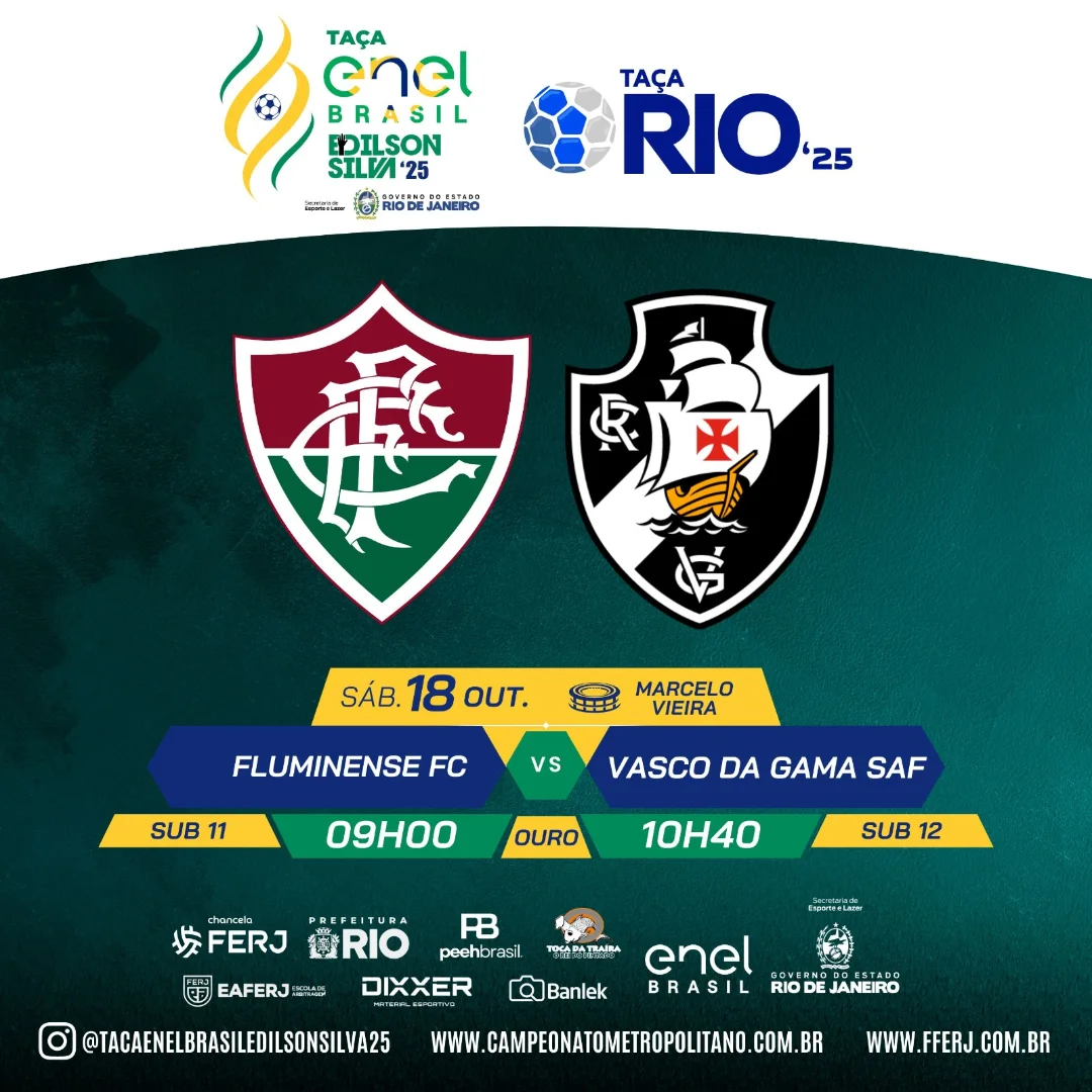 Sáb. 18 de out. | Marcelo Vieira | Fluminense x Vasco | Sub11 às 9h | Ouro | Sub 12 às 10h40
