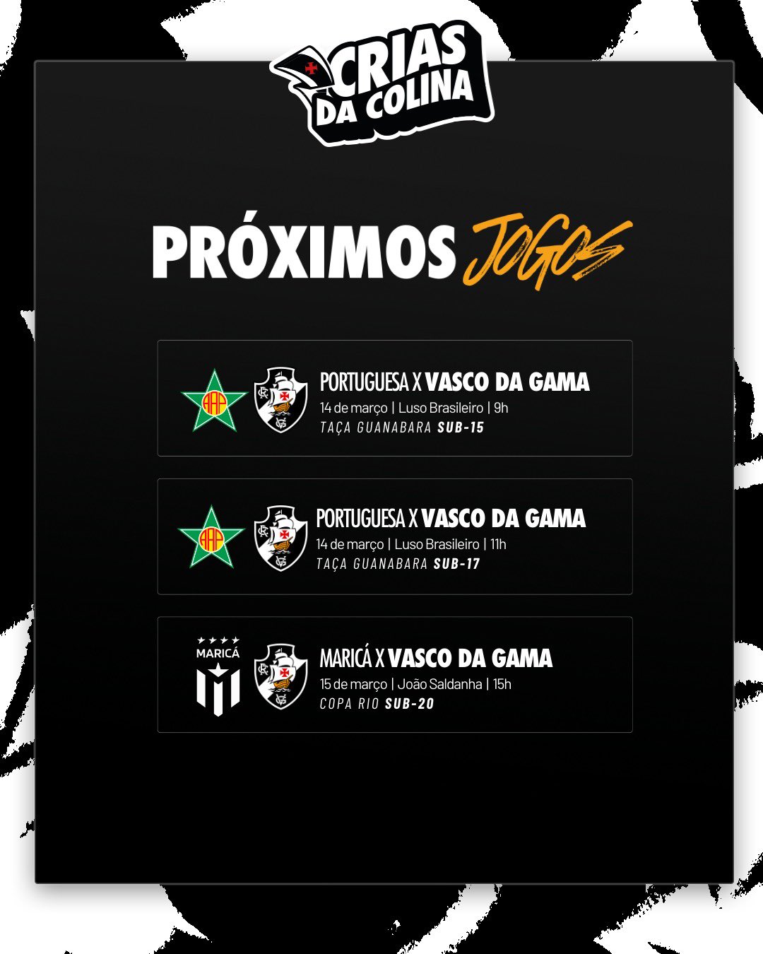 Base: Vasco terá três confrontos neste fim de semana (14 a 15/03) 🗓️