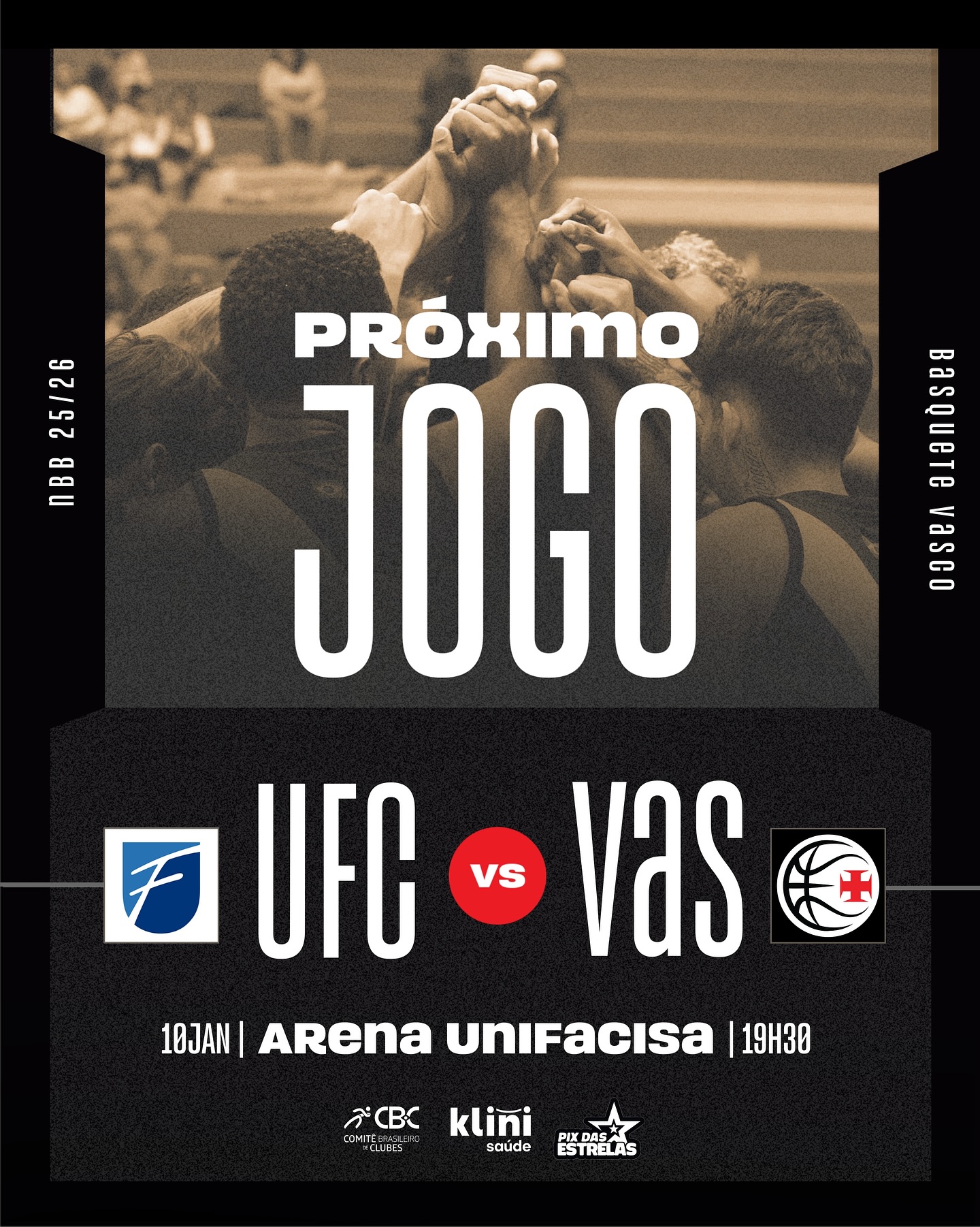 2026 começou, e já temos compromisso. 🏀💢 AMANHÃ, o Vasco da Gama entra em quadra contra a Unifacisa, às 19h30, na Arena Unifacisa.