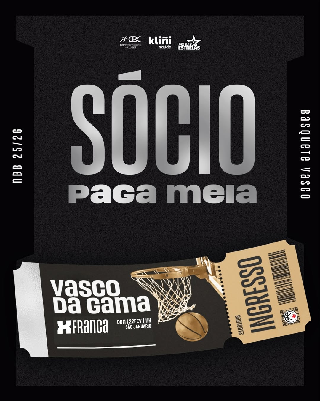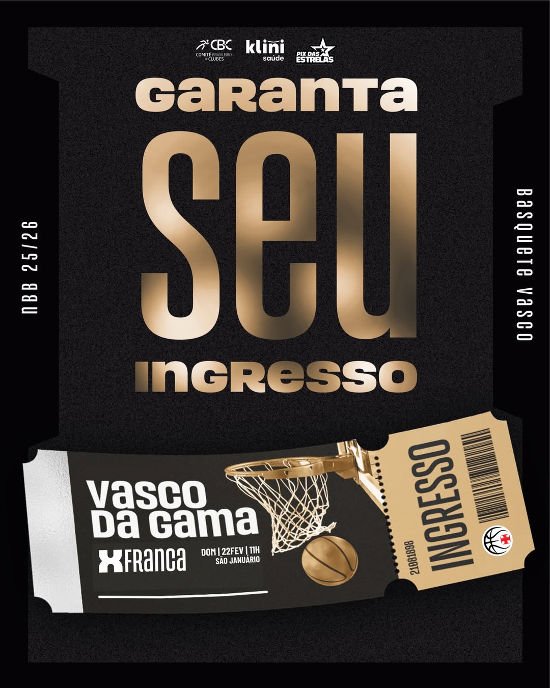 Domingo (22/02) temos um encontro marcado com o #GiganteDoBasquete. 🏀💢 Em São Januário, às 11h, o Vasco encara o Franca Basquete em mais um desafio pelo NBB CAIXA. Sócios do Vasco garantem meia-entrada.