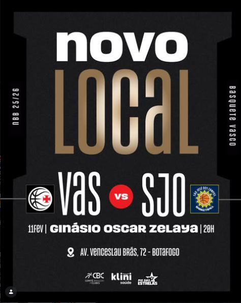 Quarta-feira (11/02) é noite de basquete. 💢🏀 O Vasco da Gama entra em quadra às 20h para enfrentar o São José, no Ginásio Oscar Zelaya, em Botafogo.