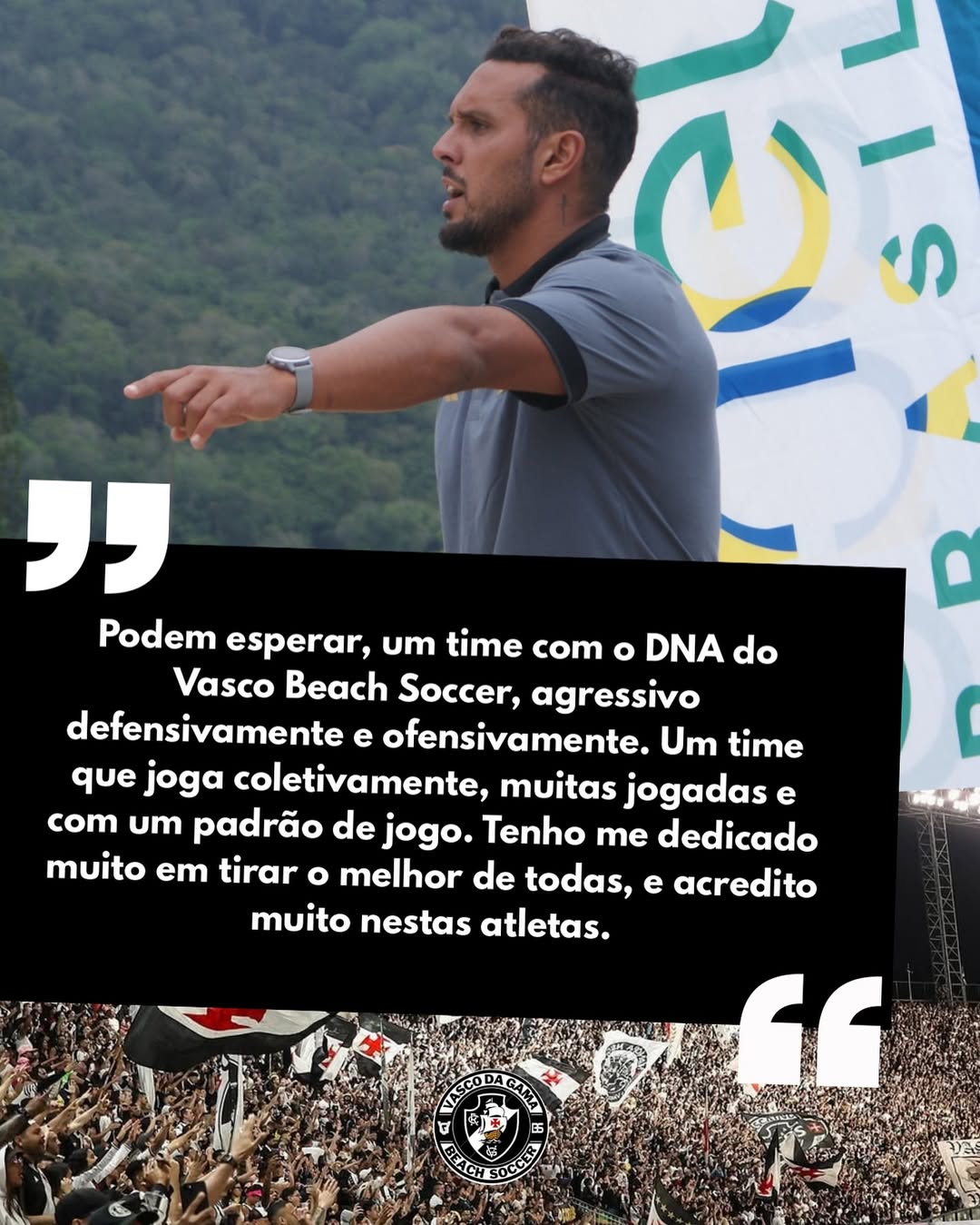 “Podem esperar um time com o DNA do Vasco Beach Soccer: agressivo defensivamente e ofensivamente. Uma equipe que joga coletivamente, com muitas jogadas e um padrão bem definido.