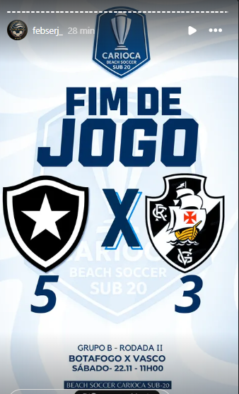 Beach Soccer Sub-20: Vasco perde para o Botafogo por 5 a 3 pelo Carioca