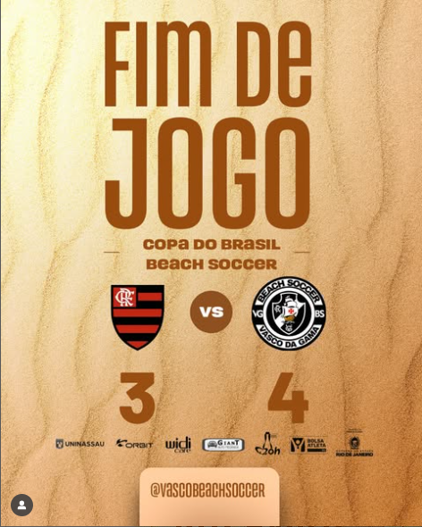 Nossa equipe volta amanhã à quadra às 20h, contra o Santa Cruz pela 3° rodada da Copa do Brasil de Beach Soccer.