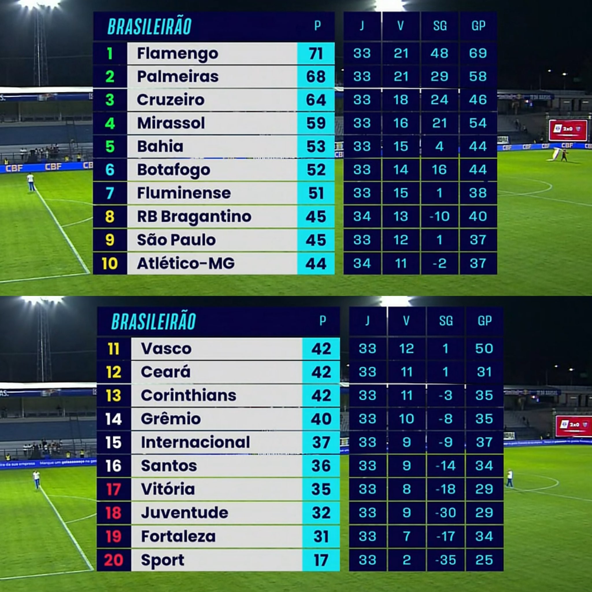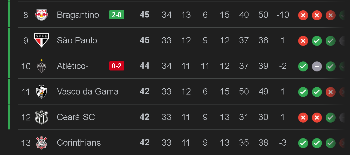 🚨👀💢 Com a vitória do Red Bull Bragantino em cima do Atlético MG, a equipe paulista ultrapassou o Vasco. Estamos em 11° lugar.