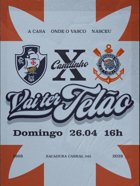 No 26/04, às 16h, vamos ser arquibancada de novo e acompanhar juntos Vasco x na nossa comunidade.