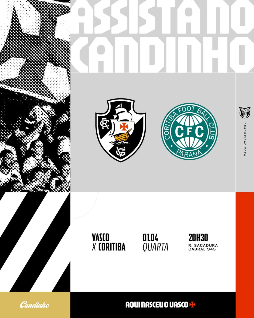 Sambarreira (@sambarreira.oficial) a partir das 18h e telão para torcer pelo Vascão contra o Coritiba, às 20h30.