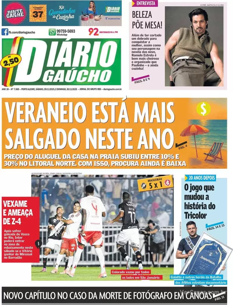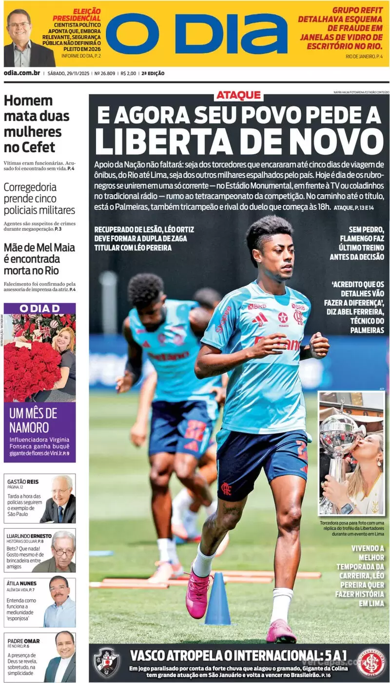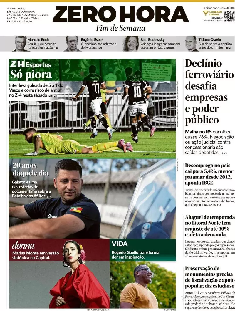 Jornais destacam a goleada do Vasco contra o Internacional, por 5 a 1, na última sexta (28), em São Januário.