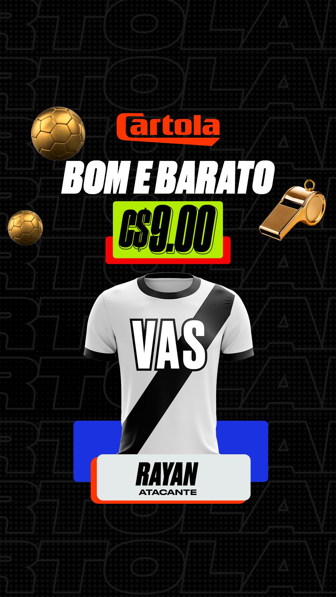 Rayan, do Vasco, é o atacante eleito "Bom e Barato" e começa o game por C$ 9. Veja aqui também preços de Carlos Vinícius e Flaco López: http://glo.bo/4qOuDbI