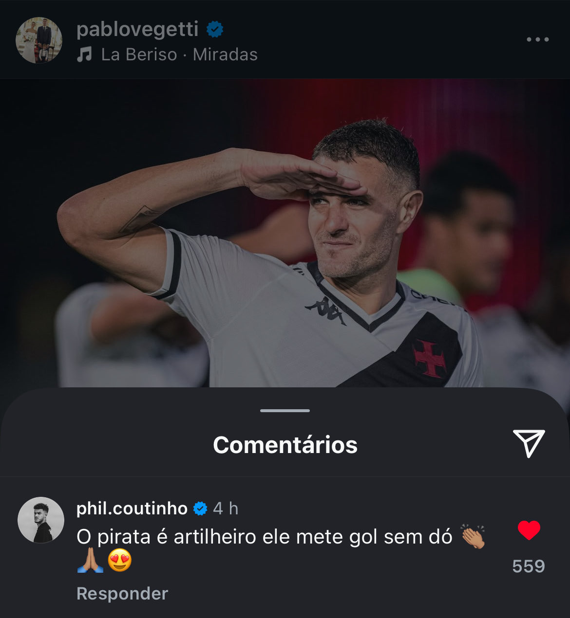 🏴☠️🪄💢 O Coutinho cantando o funk do pirata nos comentários da foto de Pablo Vegetti ❤️