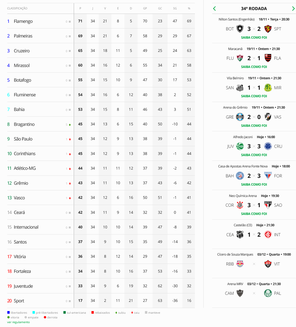 Ápós a derrota do Vasco para o Grêmio, o Vasco caiu na classificação do Brasileirão. Agora o time ocupa a 13ª colocação.