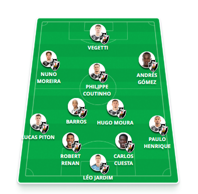 Provável escalação: Léo Jardim, Paulo Henrique, Carlos Cuesta, Robert Renan, Lucas Piton, Hugo Moura (Tchê Tchê), Barros, Coutinho, Nuno Moreira, Andrés Gómez e Vegetti (David).