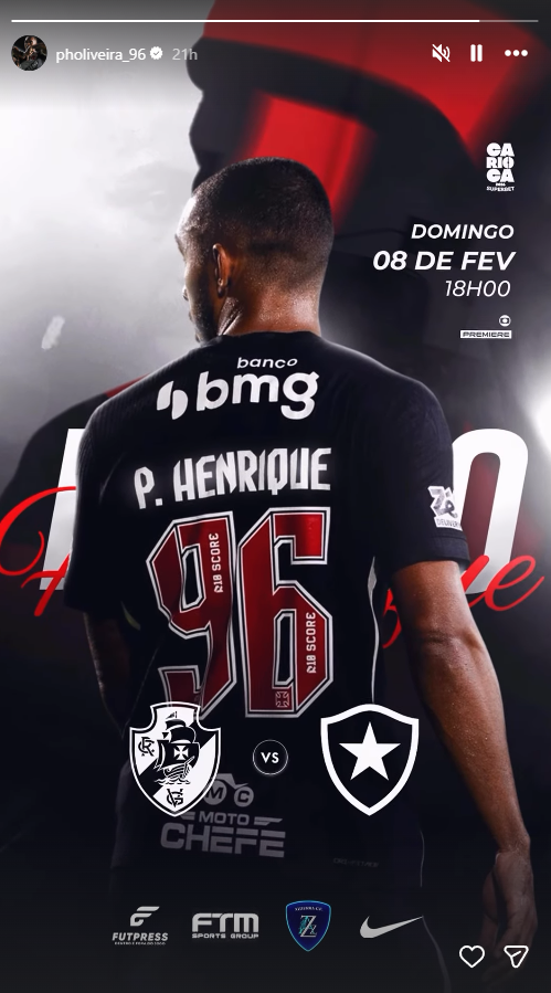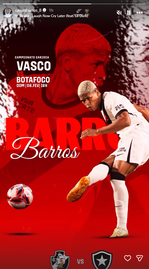 Jogadores do Vasco publicam imagens destacando o duelo contra o Botafogo, neste domingo (08), às 18h00, pelo Carioca, em São Januário.