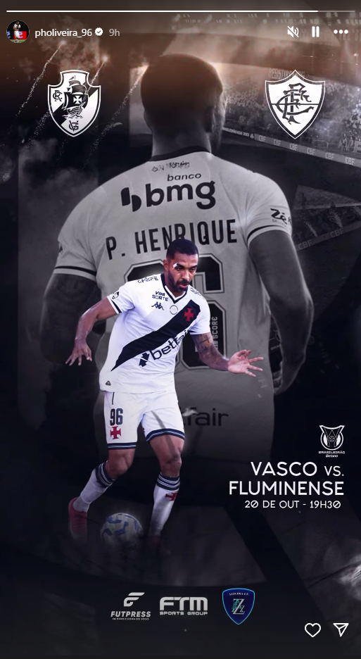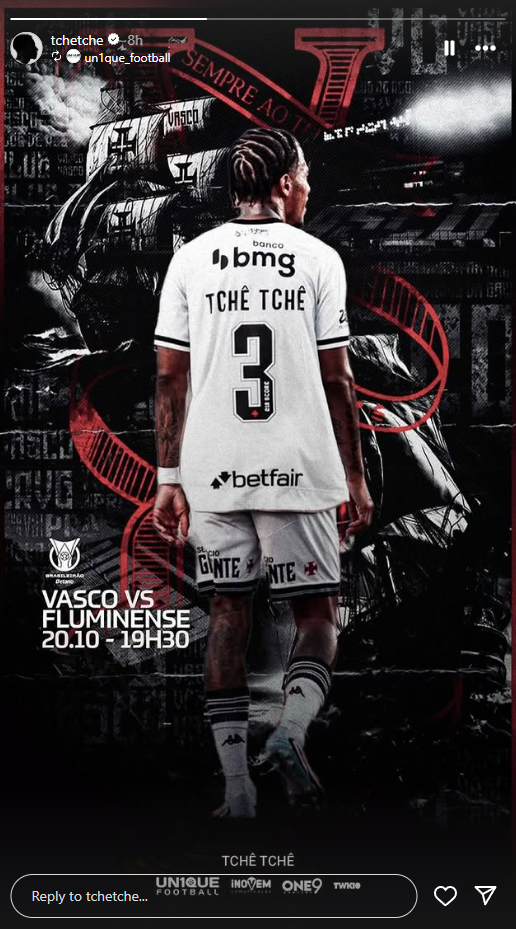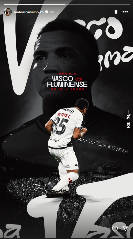 Jogadores do Vasco publicam imagens destacando o clássico diante do Fluminense, válido pela rodada 29 do Brasileirão, às 19h30, no Maracanã.