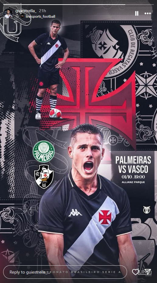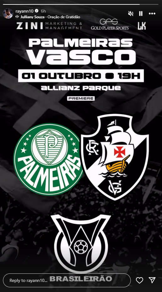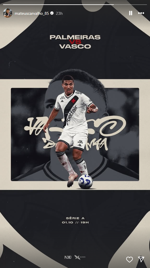 Jogadores publicam imagens destacando o duelo contra o Palmeiras, nesta quarta (01), no Allianz Parque, pelo Brasileiro.