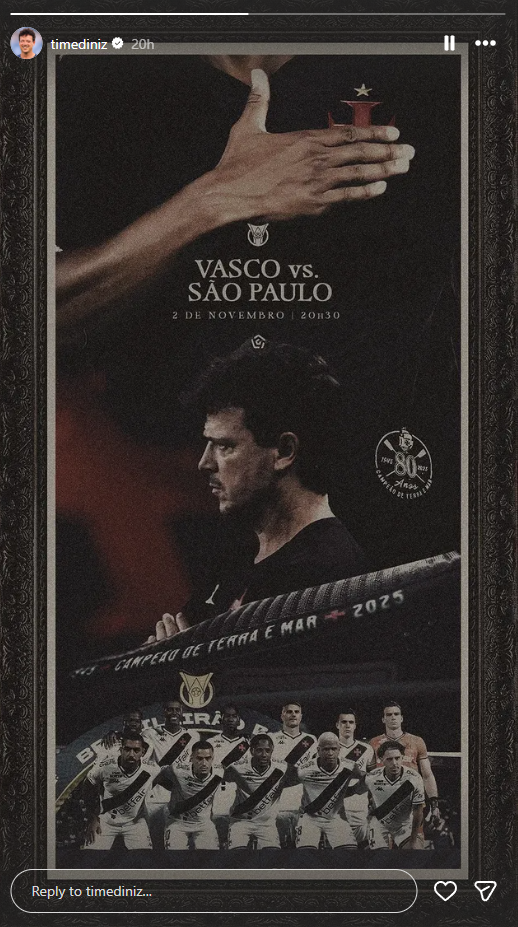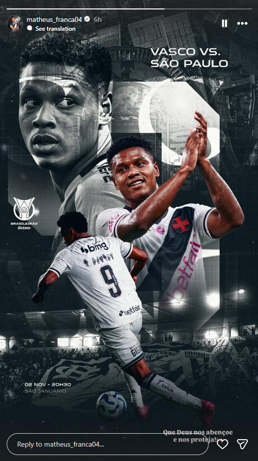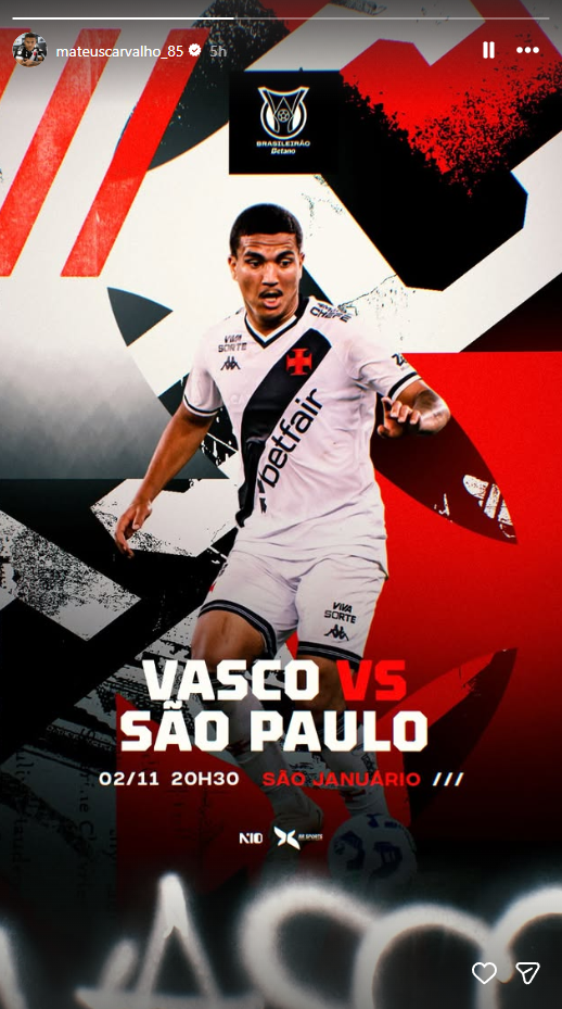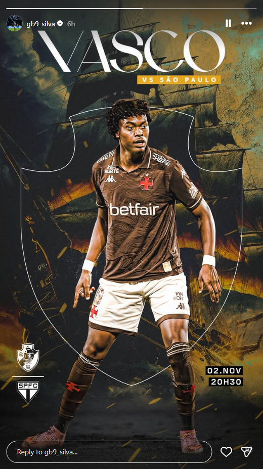 Jogadores do Vasco publicam imagens destacando o duelo contra o São Paulo, neste domingo (02), em São Januário. O duelo é válido pela rodada 31 do Campeonato Brasileiro.