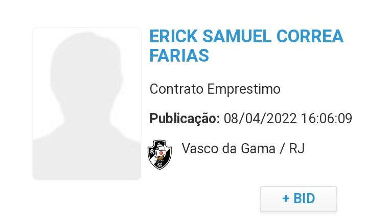 O atacante Erick já consta no BID da CBF. O jogador está liberado para atuar a partir da segunda rodada.