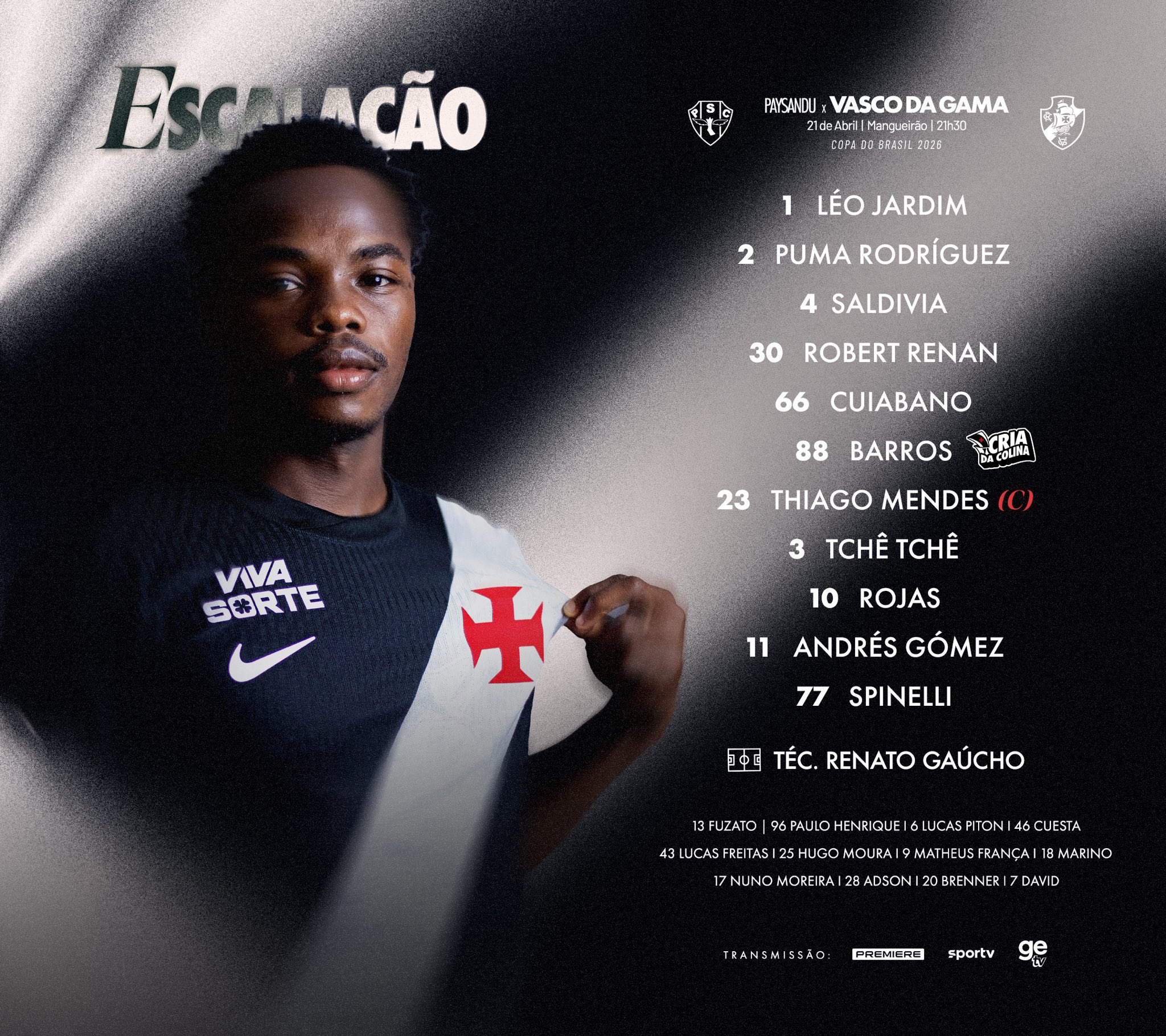 O 𝗩𝗮𝘀𝗰𝗼 𝗱𝗮 𝗚𝗮𝗺𝗮 está escalado para sua estreia na Copa do Brasil 2026!