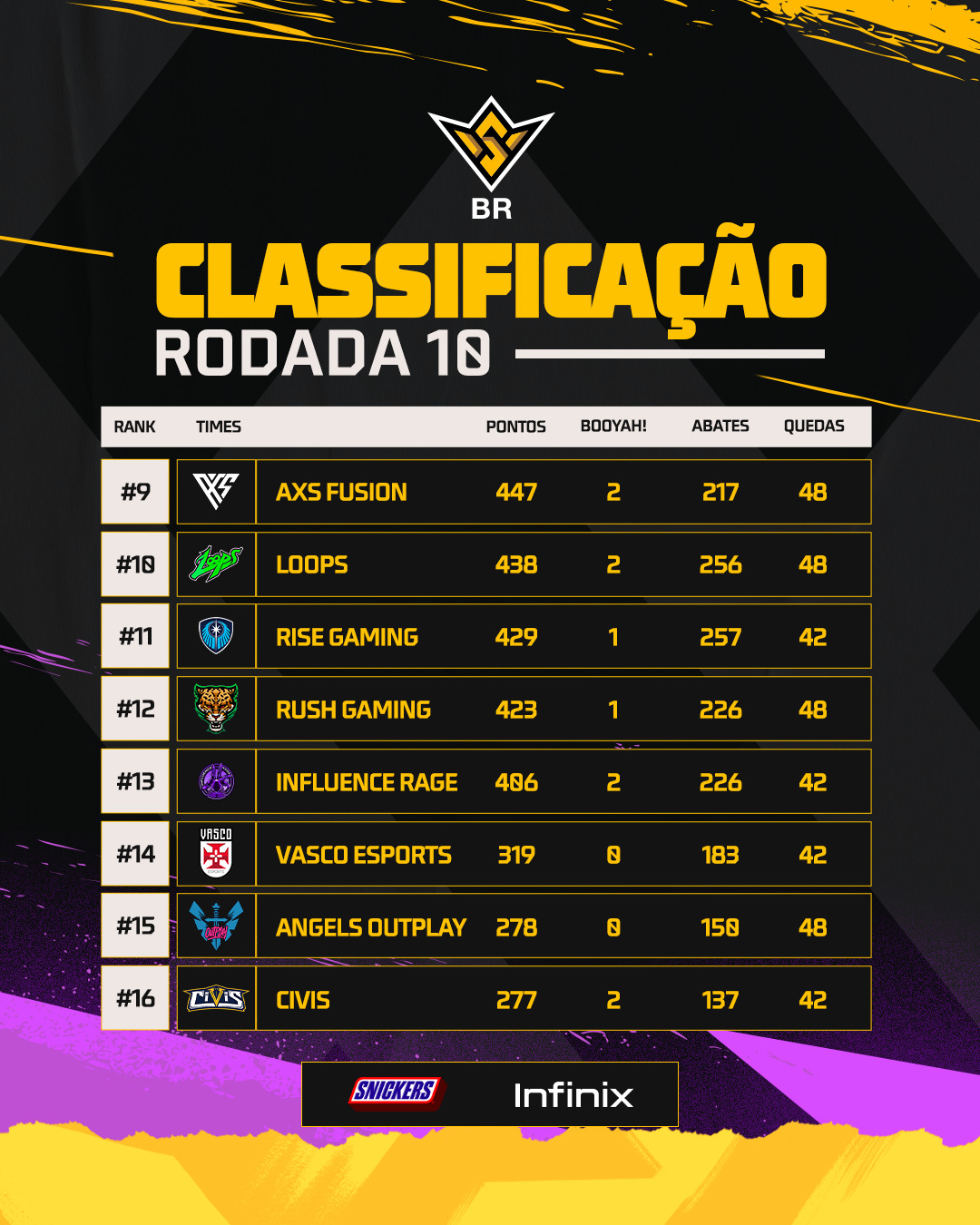 TABELA ATUALIZADA APÓS A RODADA 10 DO #FFWSBR!