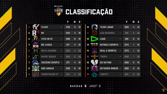 eSports: Tabela após quinta queda da rodada 10 da LBFF