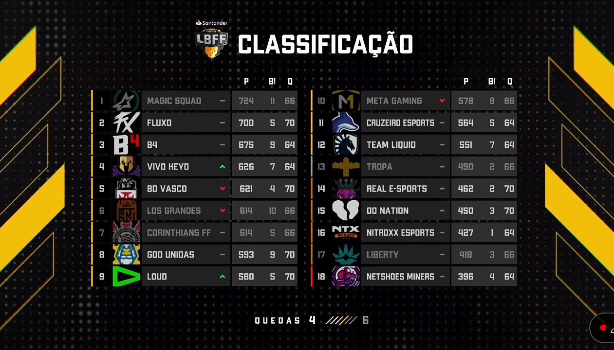 eSports: Tabela da LBFF após queda 4 da rodada 17