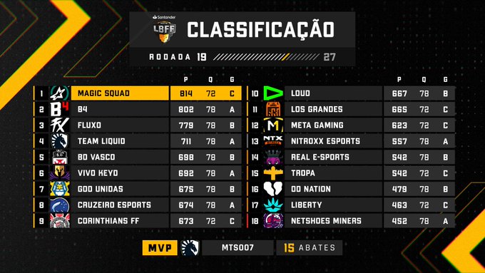 Rodada 19 da #LBFF finalizada, então se liga como ficou o top 3 da tabela! 👇