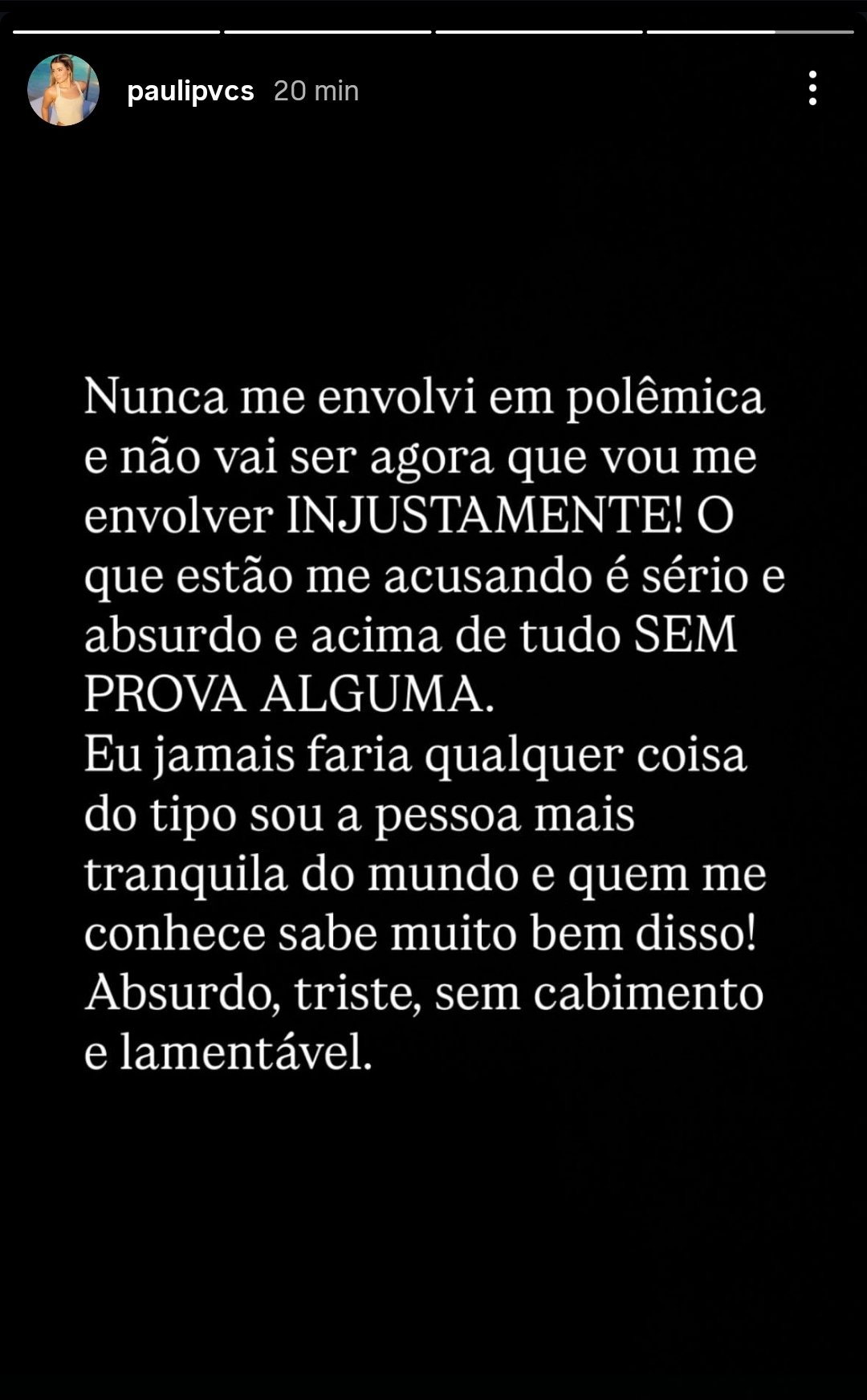 Paula Piton, esposa do lateral Lucas Piton, se pronunciou em seu Instagram.