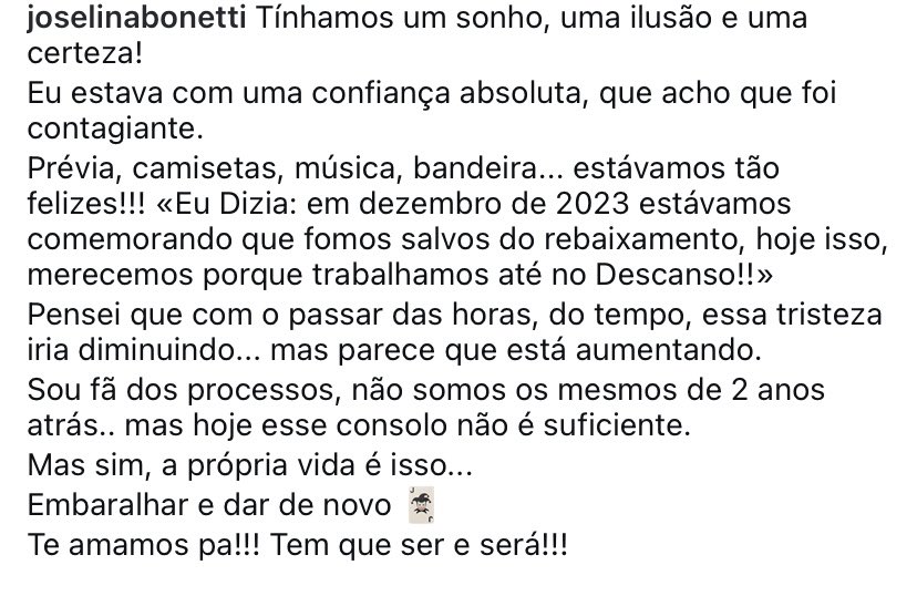 💢| Joselina, esposa de Pablo Vegetti, em seu Instagram agora há pouco