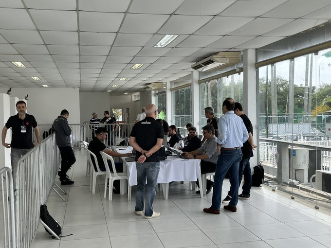 São quatro urnas eletrônicas para a votação hoje. Três aqui em cima e uma na parte de baixo, para garantir l acesso de todos. #gevas