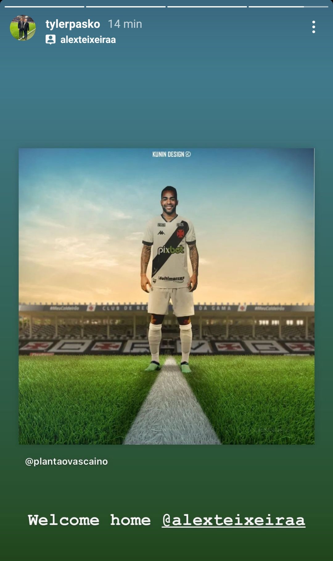 Um dos executivos do grupo, Tyler Pasko, que também é filho do fundador da empresa, Steven Pasko, repostou montagem de torcedor cruzmaltino com "bem-vindo de volta, Alex Teixeira", marcando o atleta na publicação realizada no Instagram, no que foi visto pelos vascaínos como uma espécie de "anúncio paralelo". Veja a publicação: