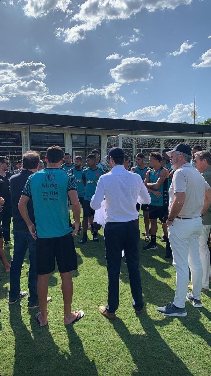 Esse registro de um dos executivos mostra a conversa dos diretores da empresa norte-americana com jogadores e comissão técnica, no gramado, antes do treinamento.