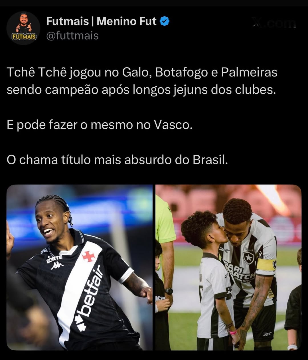 • Botafogo ficou quase 30 anos sem ganhar o Brasileirão e nunca havia ganhado a Libertadores: Tchê Tchê chegou e ganhou.