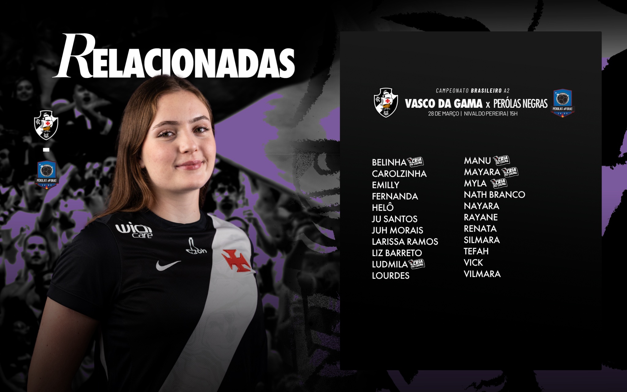 📄 Lista de atletas relacionadas para a partida contra o Pérolas Negras, pelo Brasileiro A2. 💢