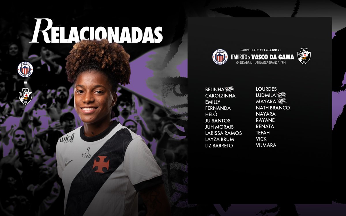 📋 A lista das #MeninasDaColina relacionadas para o duelo contra o Itabirito, às 15 horas. 🫡💢
