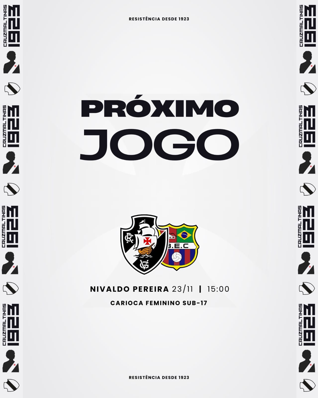Vasco Feminino Sub17 enfrentará o Barcelona EC pela 5° e última partida do Campeonato Carioca Sub17. A partida acontece domingo, 23, às 15h