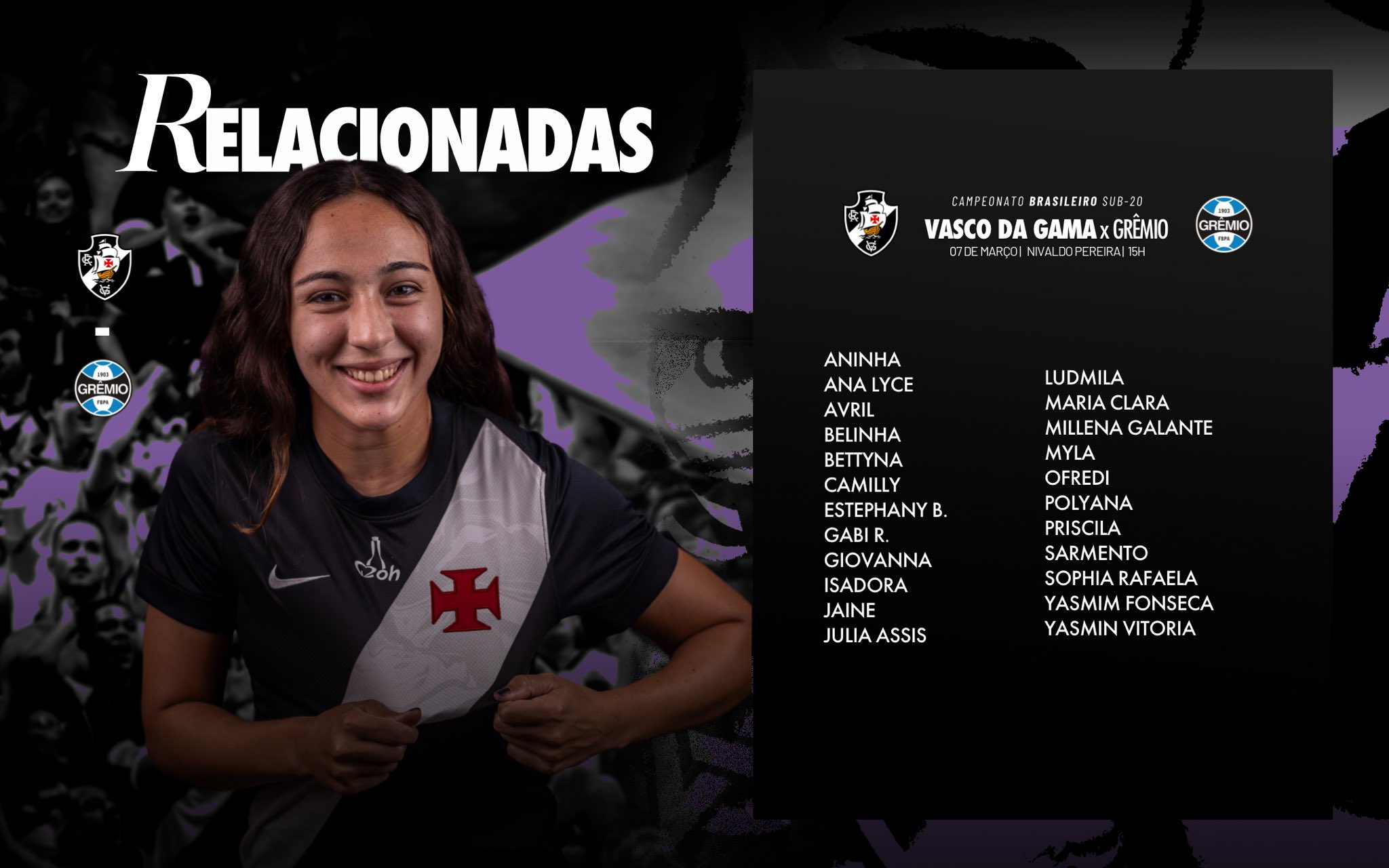 Nossas #CriasDaColina estreiam na tarde deste sábado no Brasileirão Sub-20 e estas são as atletas relacionadas para o primeiro jogo! 📋💢