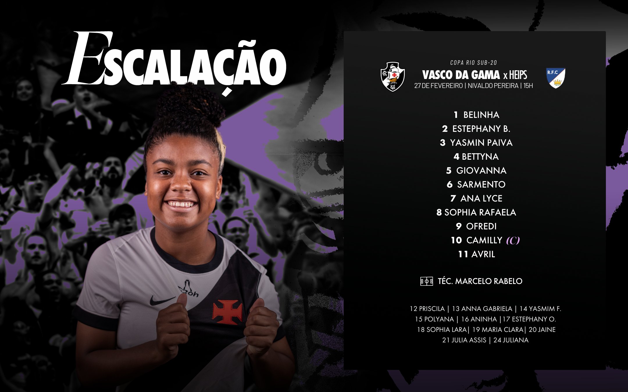 Feminino Sub-20: Vasco escalado para enfrentar o Heips 📋