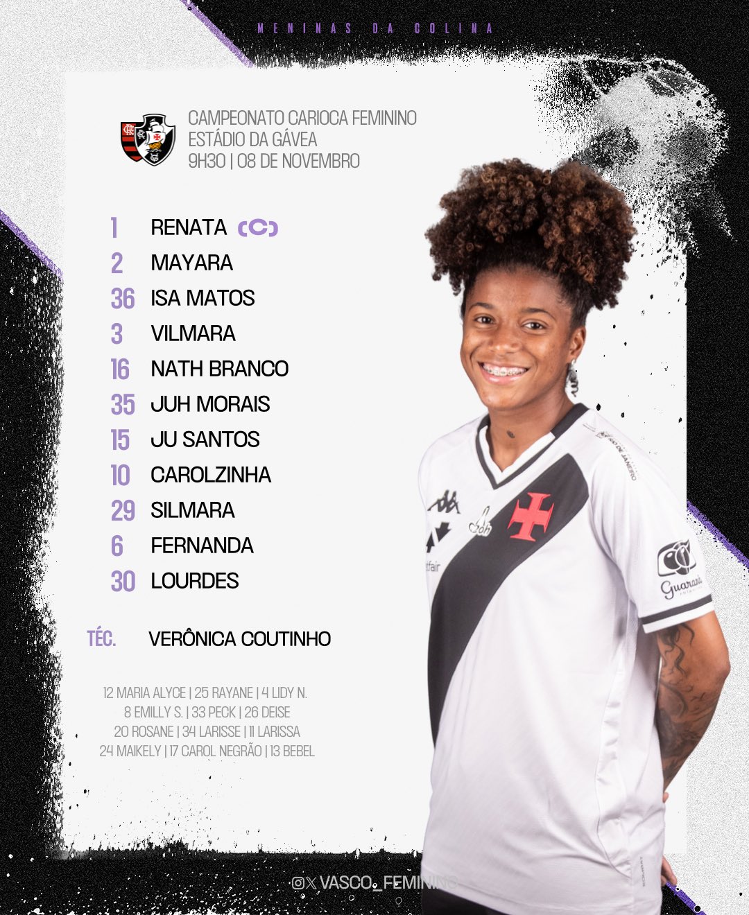 A escalação das nossas #MeninasDaColina para o clássico de logo mais! 📋💢