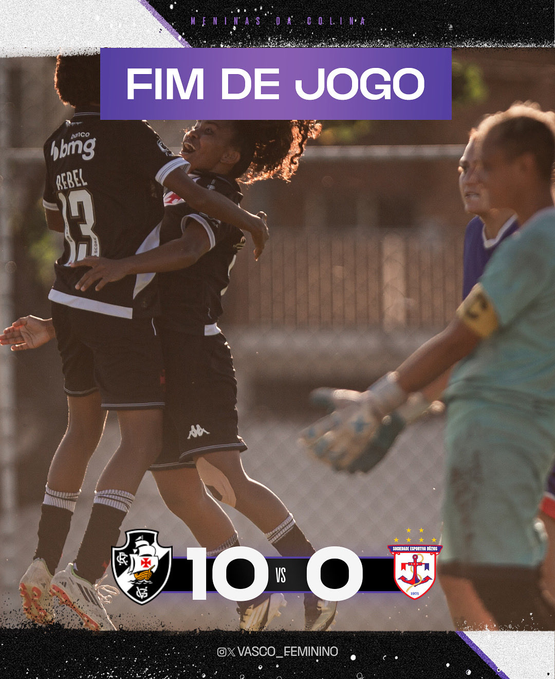Com gols de Maria Vitória (2), Bebel (2), Silmara, Rosane, Carolzinha, Ariely e Maikely, o Vasco vence o Búzios por 10 a 0 e garante vaga nas semifinais do Campeonato Carioca Feminino.