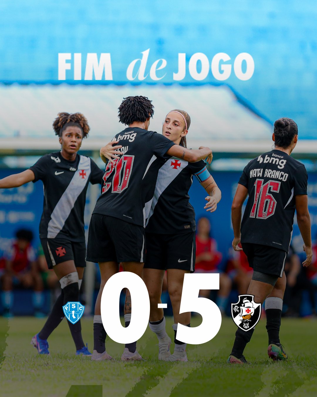 Mantendo 100% e liderança as #MeninasDaColina goleiam o Paysandu no Estádio da Curuzu por 5 a 0, com gols de Carolzinha, Tefah, Helô, Lourdes e Silmara! 💢